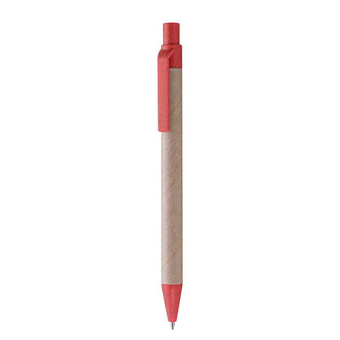 penna in cartapenna a sfera, meccanismo a scattofusto in cartarifiniture in paglia di frumentorefill nerotecnica di stampa consigliata: tampografica - serigrafica - UV