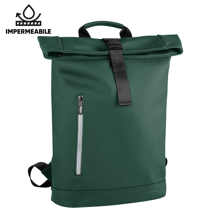 zaino in PU impermeabileinterno effetto suede con tasca porta PCtasca frontale con cernieraprofilo catarifrangentetasca sul retro con imbottitura traspirantespallacci imbottiti e regolabili