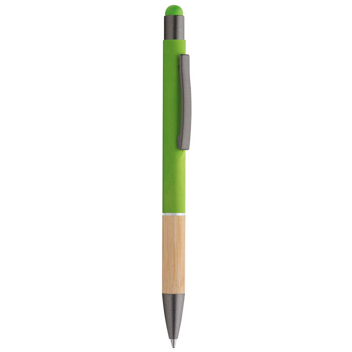 penna a sfera in metallomeccanismo a scattogommino touch screenfusto in rifinitura gommata e bamboominuterie in metallo
